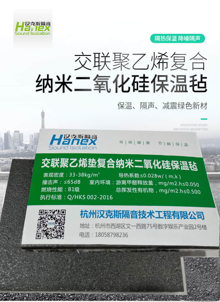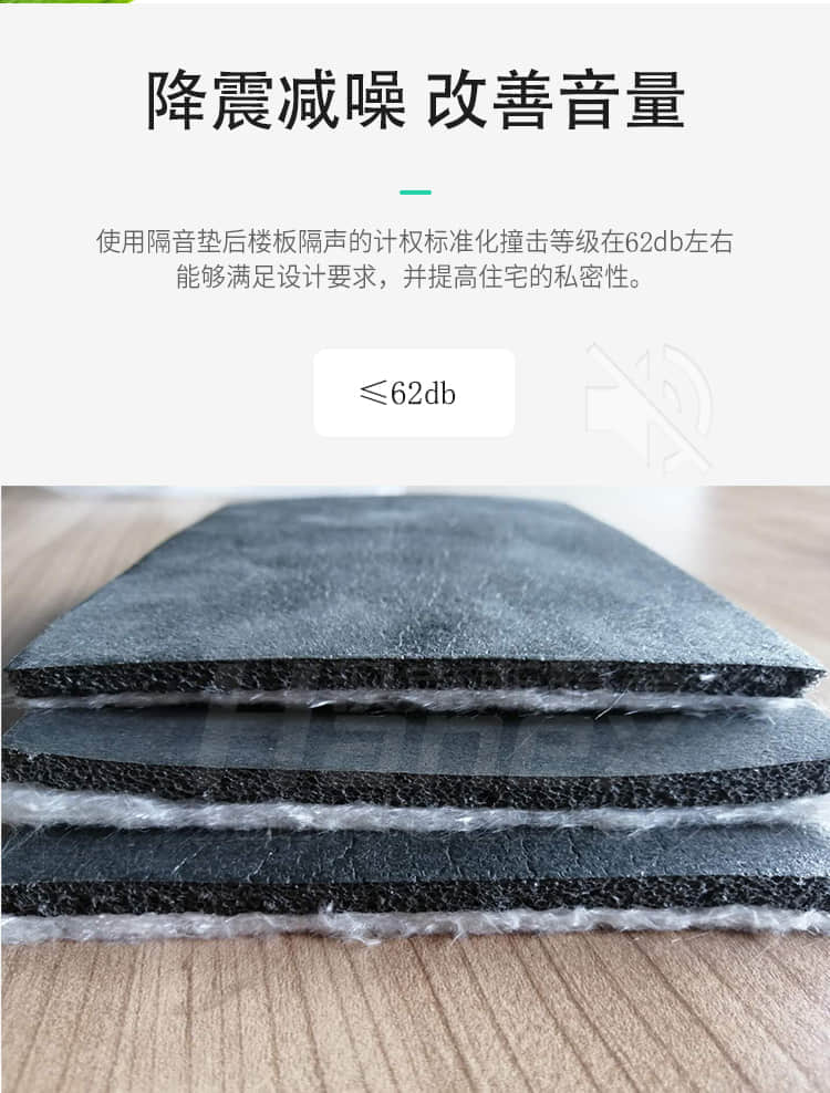 具有隔音好,防水防潮,無毒環保,隔熱保溫,回彈力好,重量輕,使用壽命長等特點,是解決住宅噪音問題的專業隔音產品,是一種新型節能環保材料。